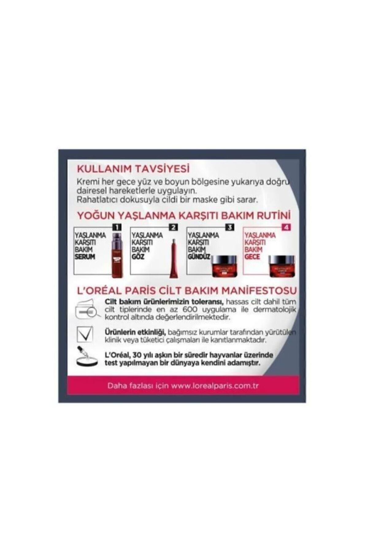 L’Oréal Paris Revitalift Lazer x3 yaşlanma karşıtı bakım kremi, kırışıklık karşıtı gündüz bakım rutininde rahatlıkla kullanılabilir. Zengin içeriğiyle cildinizin ihtiyacı olan eşsiz bakımı size sunar. Azalmış kırışıklık görünümü, cilt dokusunda gelişme, kaz ayağı çizgilerinin görünümünde azalma ve cilt sarkmaları ile mücadelenizde rahatlıkla kullanabileceğiniz bu ürünle cildiniz her zaman genç kalır.