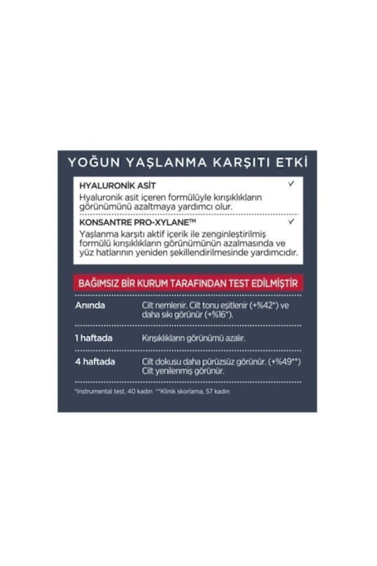 Yıllar içinde oluşan en belirgin yaşlanma izlerine karşı bile etkili olan L’Oréal Paris kırışıklık kremi, Pro-Retinol, Hyaluronik Asit ve C Vitamini içerir. Bu sayede krem yüz hatlarınızın yeniden şekillendirilmesini sağlar. Daha sıkı ve pürüzsüz bir görünümle cildiniz yenilenip zamana meydan okur.