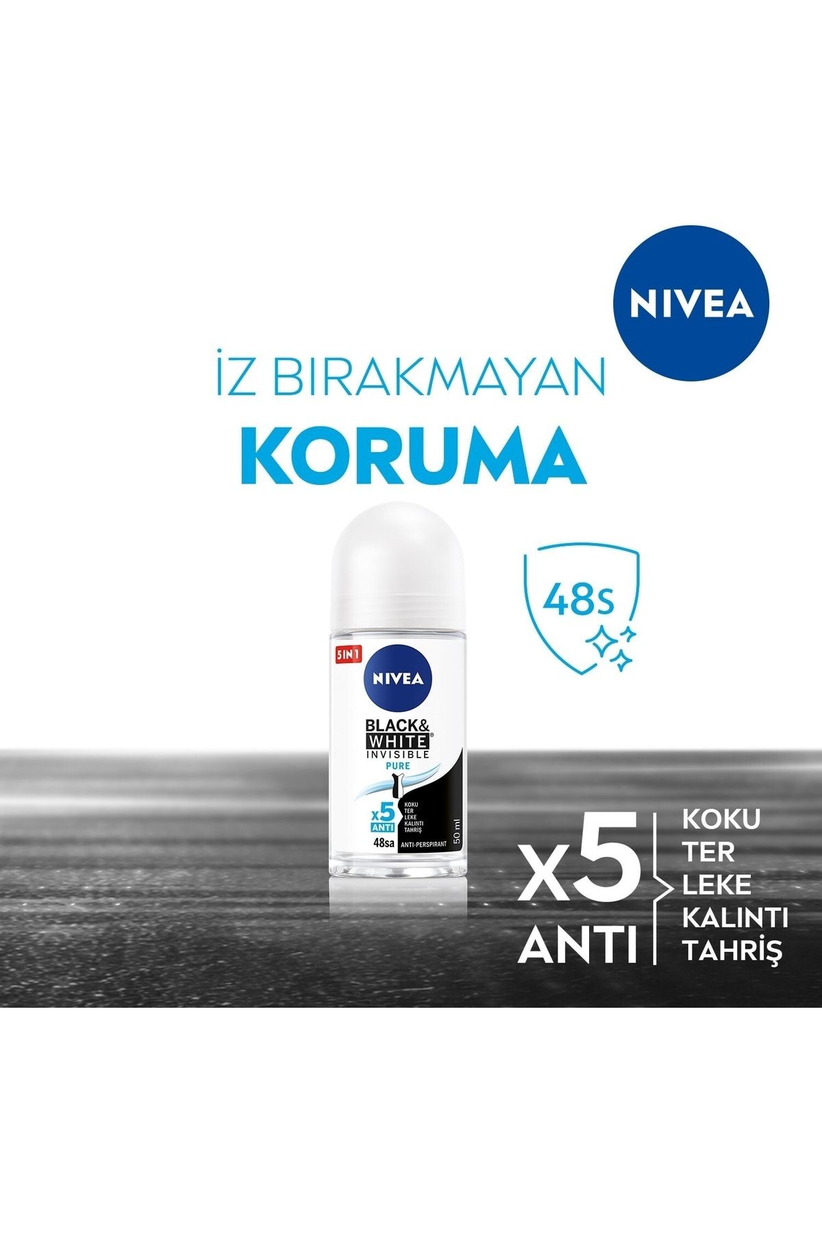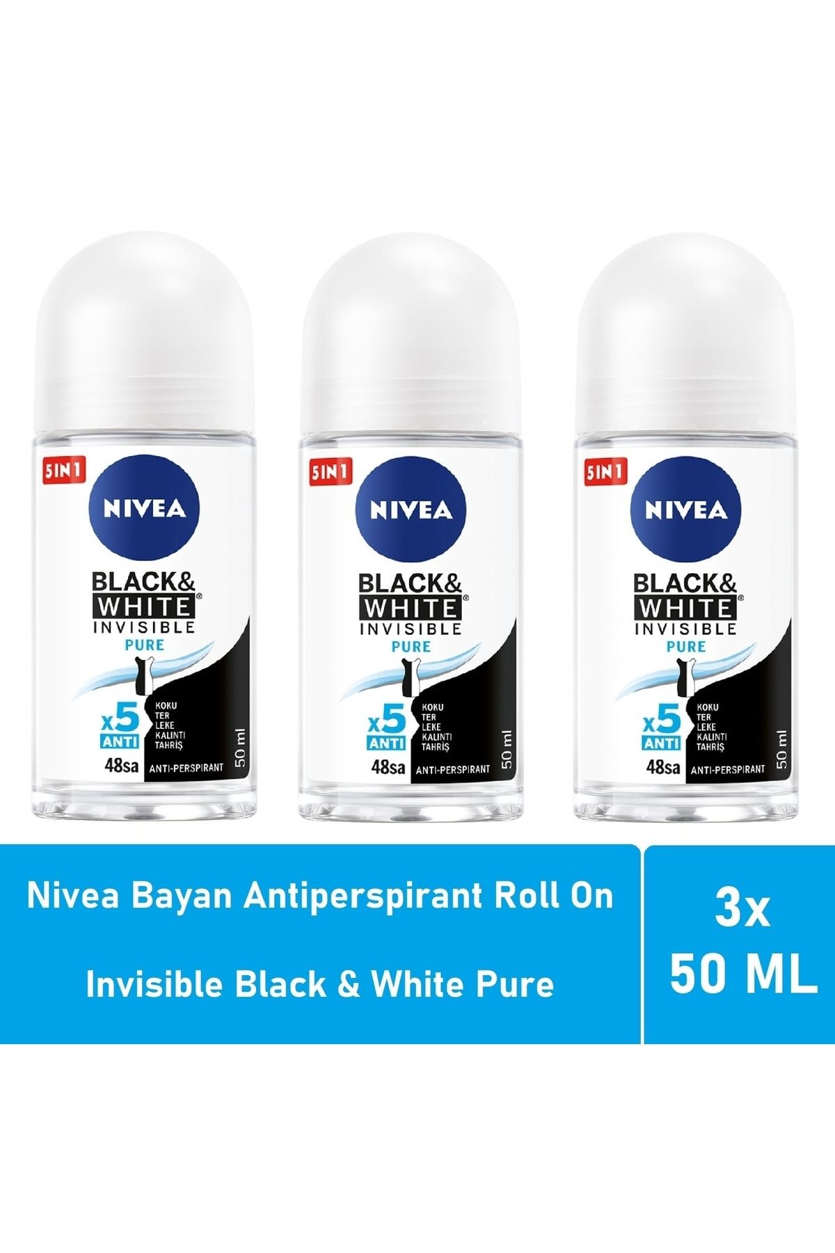 NIVEA Black&White Invisible Pure Antiperspirant Roll On Deodorant 50 ML 3’lü Avantaj Paketi ( 3 x 50 ML ) Türkiye’nin Lider Deodorantı NIVEA -X5 Anti: Özel geliştirilmiş x5 anti formülü sayesinde koku, ter, leke, kalıntı ve tahrişe karşı savaşır. -4 8 Saat anti-perspirant koruma: NIVEA roll on Deodorant Black&White Invisible Pure, cildinize önem veren 48 saate kadar etkili anti-perspirant koruma sağlar. – Açık renk giysilerde sarı leke, koyu renk giysilerde ise beyaz iz oluşumuna karşıdır. -Siyahlar siyah, beyazlar daha uzun süre beyaz kalır. -Pudralı ve alkolsüzdür. -Boya maddesi içermez. -NIVEA Black&White Invisible Pure Deodorant 2 farklı formatta mevcuttur: Sprey Deodorant ve roll on deodorant. -Nasıl Kullanılır: Ürün koltuk altına uyguladıktan sonra tamamen kurumasını bekleyin. -Almanya’da üretilmiştir.