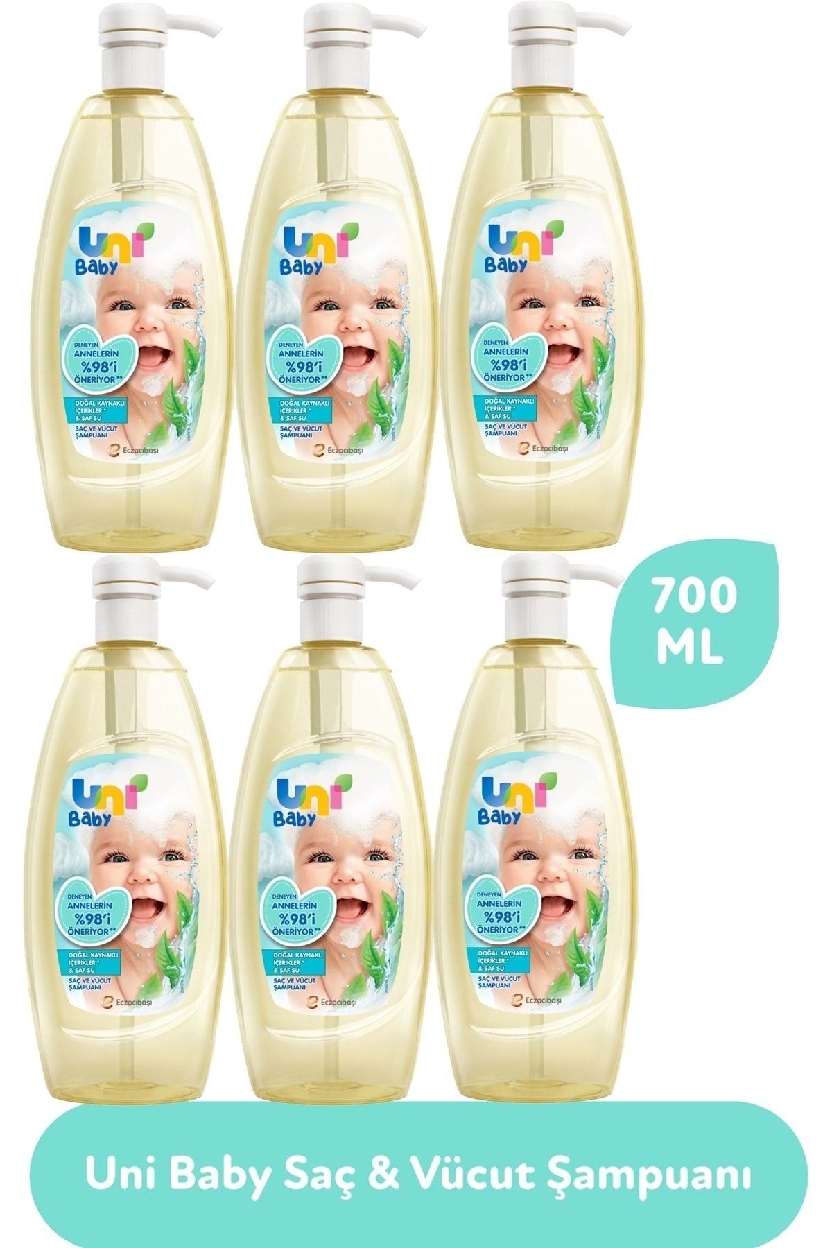 Uni baby saç ve vücut şampuan 700ml (pompalı) (6 lı set) özellikleri: Boya içermeyen ve göz yakmayan özel formülü ile uni baby boyasız şampuan güvenli temizlik sağlar ve saçları yumuşacık yapar. Bebeğinizin saç ve saç derisini besler, yapılandırır ve canlandırır. Uni baby şampuan, bebekleriniz için özel olarak geliştirilmiş formülü ile göz yakmaz. Boya içermeyen ve göz yakmayan özel formüle sahiptir. Bebeğinizin saç ve saç derisini besler, yapılandırır ve canlandırır. Bebeğinizin banyosu sırasında, saç ve vücut temizliği için güvenle kullanılır. Avrupa birliği standartlarına uygun üretim prosedürüyle ürün hazırlayan uni baby saf içerikli doğru formüllerle anneleri huzurlu, bebekleri mutlu etmeye devam ediyor. Ph değeri bebeğinizin cildi ile uyumludur. Alerjik reaksiyona neden olan maddeler içermez. Günlük kullanıma uygundur. Dermatolojik olarak test edilmiştir. Hipoalerjeniktir. Alkol, paraben, sls/sles, boya içermez. Neden uni baby? Bebeğiniz için ilk günden itibaren güvenle kullanabileceğiniz ürünler sunar. Yenidoğan cildi farklıdır: Yenidoğan bebeklerin cildi çok hassas ve incedir. Onları koruyan verniks tabakası ile doğarlar. Verniks tabakası bebeğin vücut ısısını dengede tutarak, dış etkenlere karşı korur. Verniks?E zarar gelmemesi için yenidoğan cildi için kullanılacak ürünlerin özenle seçilmesi gerekir. Yenidoğan cildi için su ve pamuk: Yenidoğanların ince ve hassas cildinin temizliği için, su ve pamuk kullanımı önerilmektedir. Böylece onu dış etkenlere karşı koruyan ve geçirgen olan cildinin kimyasallardan korunması amaçlanmaktadır. Ilk günden itibaren uni baby yenidoğan serisi: Uni baby, yenidoğan bebeklerin cilt hassasiyetlerini ve özelliklerini iyi bilerek onlara özel ürünler geliştirir. Uni baby güvenli ürün formülleri: Güncel araştırma ve literatürlerin sürekli takip edilmesi sonucu uni baby ürün formüllerinde bebeklere uygun içerikler kullanılmaktadır. Uni baby ürünleri, alkol, paraben, boya, sls/sles içermemektedir, güvenle kullanılır.