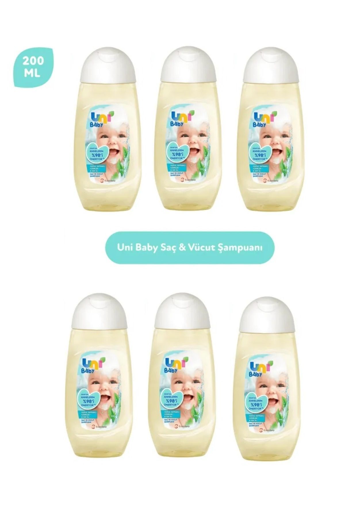 Uni Baby Saç Ve Vücut Şampuanı 200 Ml X6 Boya ve alerjen madde içermeyen Uni Baby Sampuan, göz yakmayan formülü ile bebeginiz için güvenli temizlik saglar.Koruma, yapilandirma ve canlandirma ; Dogal yulaf özü Avena Sativa, içerdigi E vitamini, mineraller ve proteinleri ile saç ve saç derisini korur. ; Saçlari yumusacik yapar. ; Hos kokuludur. Alkol, Paraben, Boya, Phthalate, Alerjen madde, SLS (Sodium Lauryl Sulfate) ve SLES (Sodium Laureth Sulfate) içermez. ;