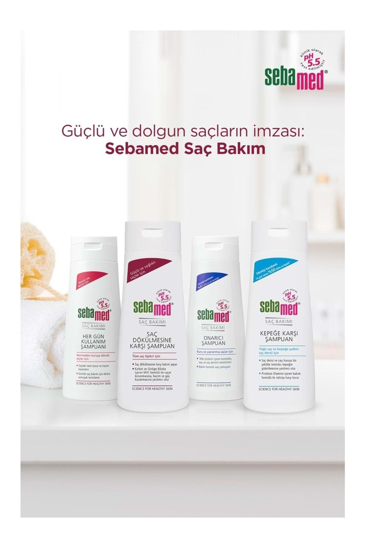 Sebamed Şampuan 400ML Hergün Kullanım (Tüm Saç Tipleri için) (6 Lı Set) Etki Alanı: – Temizleme, ferahlık kazandırma Uygun Cilt Tipleri: – Kuru, zayıf, ince telli ve sık yıkanan saçlar Ürünün Faydaları: – Sebamed Everyday Shampoo, kuru, zayıf, ince telli ve sık yıkanan saçlar için geliştirilen günlük kullanım şampuanıdır. – Hassas formülü ile saçları ve saç derisini nazikçe temizleyerek saçlara hafiflik kazandırır. – Extra yumuşak temizleyici glukosid saçı ve saç derisini görünmeyen ince bir filmle kaplayarak kurumamasına yardımcı olur. – Saçları nemlendirerek besler ve saçların güç kazanmasını destekler. – Saçı şekillendirici özelliği ile ayrıca krem kullanımı gerektirmez. – Saça parlaklık ve canlılık kazandırır. – Renklendirici içermez. Kullanım Şekli: – Saçınızı ıslatın bir miktar şampuanı avuç içinize alıp hafifçe köpürtün. – Saç derinize nazikçe masaj yaparak uygulayın. – İyice durulayın. – Gerekirse tekrarlayın Kullanım Sıklığı: – Günlük kullanıma uygundur. Ürün Bileşimi: – Aqua, Decyl Glucoside, Disodium Laureth Sulfosuccinate, Sodium Lauroyl Sarcosinate, PEG-55 Propylene Glycol Oleate, Propylene Glycol, Hydroxypropyl Oxidized Starch PG-Trimonium Chloride, Sodium Citrate, PEG-18 Glyceryl Oleate/Cocoate, Phenoxyethanol, Sodium Benzoate