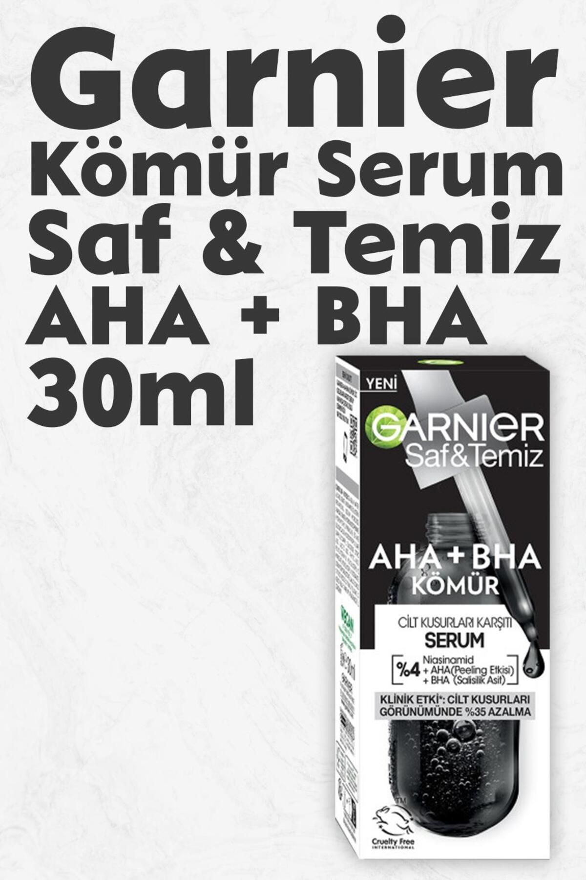 Garnier Serum Saf & Temiz AHA + BHA Kömür 30 ml GARNIER AHA+BHA CİLT KUSURLARI KARŞITI SERUMUN CİLDE FAYDALARI NELER? [%4 [NİASİNAMİD +AHA+BHA] ile zenginleştirilmiş ilk siyah serumumuz, cilt kusurlarının görünümünü azaltır. Cildi pürüzsüzleştirir ve eşit bir cilt görünümü sağlar. SERUMUN ARKASINDAKİ BİLİM:Kömür; cildi arındırmaya ve matlaştırmaya yardımcı olduğu bilinen doğal kaynaklı içeriktir.AHA, mat ve eşit olmayan cildi arındırmaya yardımcı olur.BHA, cilt kusurlarının görünümünü azaltmayı sağlar.Niasinamid, cilde yatıştırıcı his sağlamaya yardımcı olduğu bilinmektedir. NASIL KULLANILIR?Temiz yüze uygulayın ve nazikçe cilde pürüzsüz şekilde yayın. Sabah ve akşamları günlük rutininizde veya hedefe yönelik bir bakım olarak kullanabilirsiniz. Göz çevresiyle temasından kaçının. KANITLANMIŞ ETKİLER:İlk kullanımdan itibaren daha pürüzsüz ve mat bir cilt görünümü.7 Gün İçinde: Cilt dokusu arınmış ve cilt tonu daha eşit görünür.28 Gün İçinde: Gözenek ve siyah nokta gibi cilt kusurlarının görünümünde azalma. Tüketici Testi, 155 Gönüllü. CİLT KUSURLARI KARŞITI SERUM AKNEYE EĞİLİM GÖSTEREN CİLTLER İÇİN UYGUNDUR.