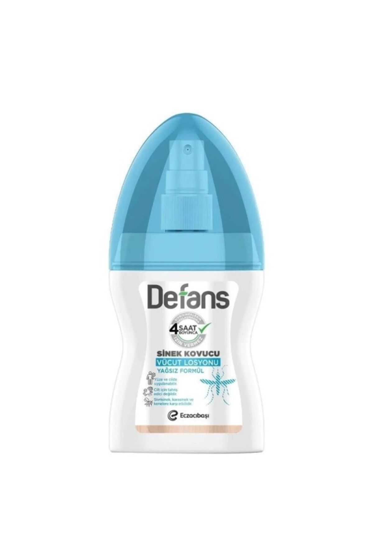 Defans Sinek Kovucu Vücut Losyonu (Yağsız Formül) 100 ml Özellikleri; Özet Bilgi: Yüze ve cilde uygulanabilir.; Ürün Faydaları: Ciltten emilmeyen özel yağsız formülü bulunmaktadır.; Kullanım Şekli: Cildinizin açıkta kalan bölümlerine veya gerektiğinde yüzünüze ve boynunuza uygulayınız.; Göze ve dudaklara sürmeyiniz.; Kullanmadan önce iyice çalkalayınız.