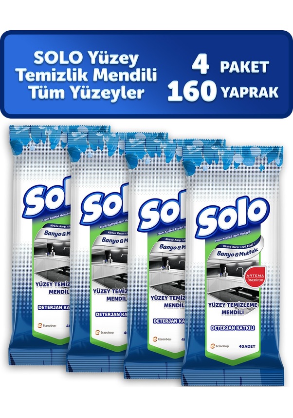 Solo Yüzey Temizleyici Islak Mendil 4’lü Mutfak-Banyo 160 Yaprak