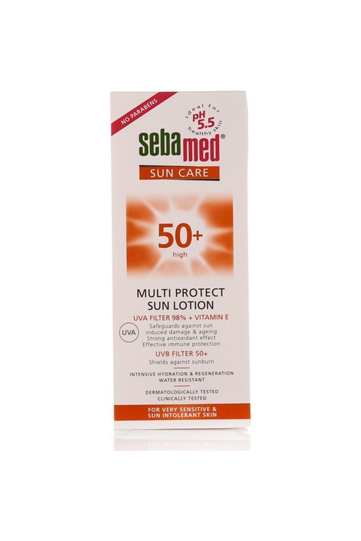 Sebamed Sun Koruyucu Güneş Losyonu SPF 50 150 ml Cilt Tipi Bu ürün özellikle açık tenli kişiler için uygundur. Ürün Özellikleri Sebamed Sun Losyon SPF 50+ UVA ve UVB ışınlarına karşı mükemmel bir koruma sağlar. Vitamin E ile cildi erken yaşlanma ve elastikiyet kaybına karşı korur. İçeriğinde yer alan deniz planktonları ile cildi nemlendirir ve kuruluğa karşı korur. Ürün Kullanımı Deniz ve duş sonrasında tekrarlanması tavsiye edilir. İhtiyaç duyulduğunda gün içerisinde istenildiği kadar tekrarlanabilir. Ürün Avantajları Günlük kullanım için uygundur.