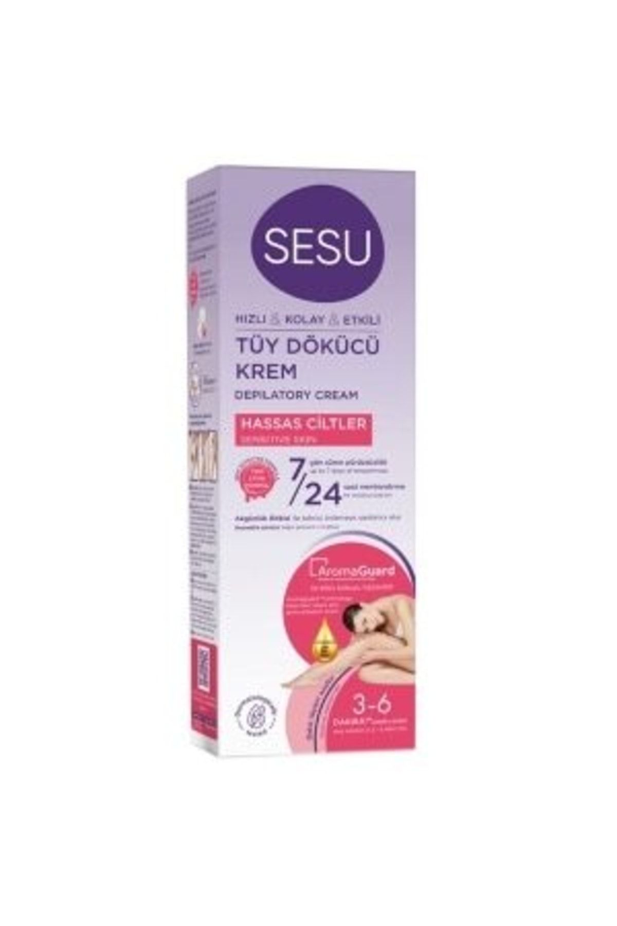 • Acil durumlardaki pratik çözüm • Sesu Tüy Dökücü Krem Hassas ciltler, acil durumlarda tüylerinizden pratik ve kolay bir şekilde kurtulmanızı sağlar. ; • Farklı tüy ve cilt tiplerine göre özel olarak geliştirilmiş formülleri ile uygulama sonrasında cildinizin daha pürüzsüz görünmesini sağlar. ; • Özel formüllü Sesu Tüy Dökücü Krem Hassas ciltler, Boswellia Serrata Gum ile cildinizde tahrişi azaltırken, E vitamini ile cildinizin nemini korumasına yardımcı olur. ; • Aroma GuardTM teknolojisi sayesinde kötü kokuyu hapseder. ; • Cezbedici kokusuyla kullanım sırasında hoş bir deneyimi sunar. ; Kullanım • 3 – 6 dakikada acil çözüm 1) Kremi cildinizdeki tüyleri tamamen kapatacak şekilde spatula yardımı ile ince bir tabaka halinde yayınız. ; 2) Kremi cildinizde 3 dakika beklettikten sonra küçük bir bölgeyi spatula yardımı ile temizleyerek tüylerin alınıp alınmadığını kontrol ediniz. ; Tüyler kolaylıkla alınıyorsa kremin tamamını temizleyiniz. ; Tüyler kolaylıkla alınmıyorsa, birkaç dakika daha kremi cildinizde bekletebilirsiniz.Ancak, kremi cildinizde 10 dakikadan fazla bekletmeyiniz. ; 3) Cildinizi soğuk suyla yıkayarak durulayınız.;