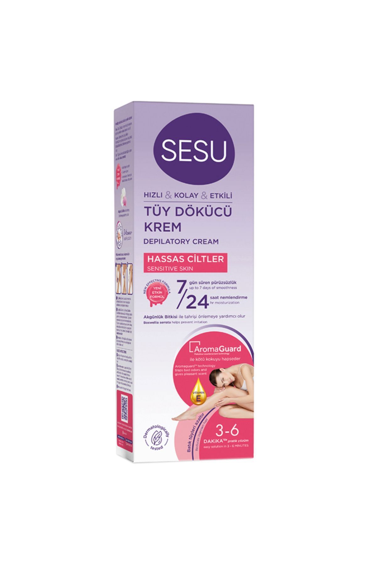 • Acil durumlardaki pratik çözüm • Sesu Tüy Dökücü Krem Hassas ciltler, acil durumlarda tüylerinizden pratik ve kolay bir şekilde kurtulmanızı sağlar. ; • Farklı tüy ve cilt tiplerine göre özel olarak geliştirilmiş formülleri ile uygulama sonrasında cildinizin daha pürüzsüz görünmesini sağlar. ; • Özel formüllü Sesu Tüy Dökücü Krem Hassas ciltler, Boswellia Serrata Gum ile cildinizde tahrişi azaltırken, E vitamini ile cildinizin nemini korumasına yardımcı olur. ; • Aroma GuardTM teknolojisi sayesinde kötü kokuyu hapseder. ; • Cezbedici kokusuyla kullanım sırasında hoş bir deneyimi sunar. ; Kullanım • 3 – 6 dakikada acil çözüm 1) Kremi cildinizdeki tüyleri tamamen kapatacak şekilde spatula yardımı ile ince bir tabaka halinde yayınız. ; 2) Kremi cildinizde 3 dakika beklettikten sonra küçük bir bölgeyi spatula yardımı ile temizleyerek tüylerin alınıp alınmadığını kontrol ediniz. ; Tüyler kolaylıkla alınıyorsa kremin tamamını temizleyiniz. ; Tüyler kolaylıkla alınmıyorsa, birkaç dakika daha kremi cildinizde bekletebilirsiniz.Ancak, kremi cildinizde 10 dakikadan fazla bekletmeyiniz. ; 3) Cildinizi soğuk suyla yıkayarak durulayınız.;