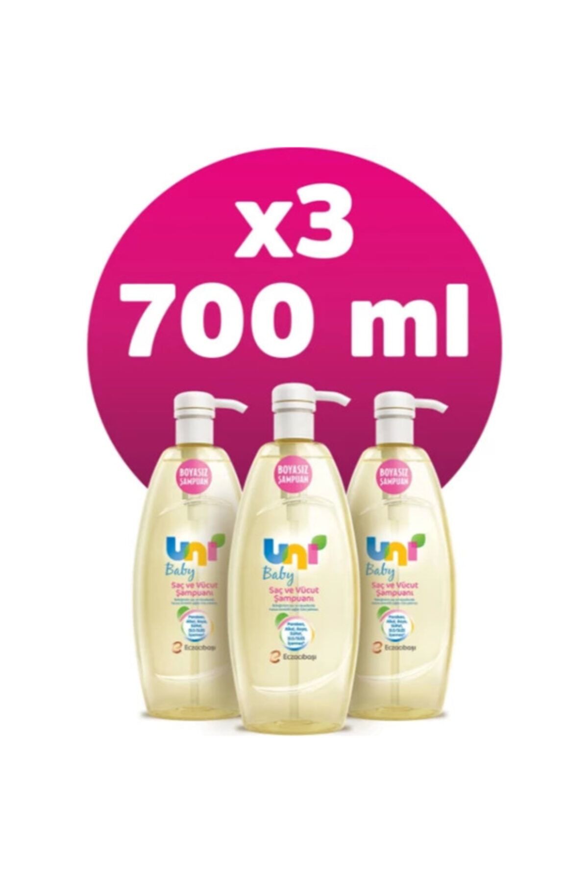 Uni baby şampuan 700 ml 3’lü Özellikleri Boya içermeyen ve göz yakmayan özel formülü ile uni baby boyasız şampuan güvenli temizlik sağlar ve saçları yumuşacık yapar. ; Bebeğinizin saç ve saç derisini besler, yapılandırır ve canlandırır. ; Uni baby şampuan, bebekleriniz için özel olarak geliştirilmiş formülü ile göz yakmaz. ; Boya içermeyen ve göz yakmayan özel formüle sahiptir. ; Bebeğinizin saç ve saç derisini besler, yapılandırır ve canlandırır. ; Bebeğinizin banyosu sırasında, saç ve vücut temizliği için güvenle kullanılır. ; Avrupa birliği standartlarına uygun üretim prosedürüyle ürün hazırlayan uni baby saf içerikli doğru formüllerle anneleri huzurlu, bebekleri mutlu etmeye devam ediyor. ; Ph değeri bebeğinizin cildi ile uyumludur. ; Alerjik reaksiyona neden olan maddeler içermez. ; Günlük kullanıma uygundur. ; Dermatolojik olarak test edilmiştir. ; Hipoalerjeniktir. ; Alkol, paraben, sls/sles, boya içermez. ; Neden uni baby? Bebeğiniz için ilk günden itibaren güvenle kullanabileceğiniz ürünler sunar. ; Yenidoğan cildi farklıdır: Yenidoğan bebeklerin cildi çok hassas ve incedir. ; Onları koruyan verniks tabakası ile doğarlar. ; Verniks tabakası bebeğin vücut ısısını dengede tutarak, dış etkenlere karşı korur. ; Verniks e zarar gelmemesi için yenidoğan cildi için kullanılacak ürünlerin özenle seçilmesi gerekir. ; Yenidoğan cildi için su ve pamuk: Yenidoğanların ince ve hassas cildinin temizliği için, su ve pamuk kullanımı önerilmektedir. ; Böylece onu dış etkenlere karşı koruyan ve geçirgen olan cildinin kimyasallardan korunması amaçlanmaktadır. ; Ilk günden itibaren uni baby yenidoğan serisi: Uni baby, yenidoğan bebeklerin cilt hassasiyetlerini ve özelliklerini iyi bilerek onlara özel ürünler geliştirir. ; Uni baby güvenli ürün formülleri: Güncel araştırma ve literatürlerin sürekli takip edilmesi sonucu uni baby ürün formüllerinde bebeklere uygun içerikler kullanılmaktadır. ; Uni baby ürünleri, alkol, paraben, boya, sls/sles içermemektedir, güvenle kullanılır.;