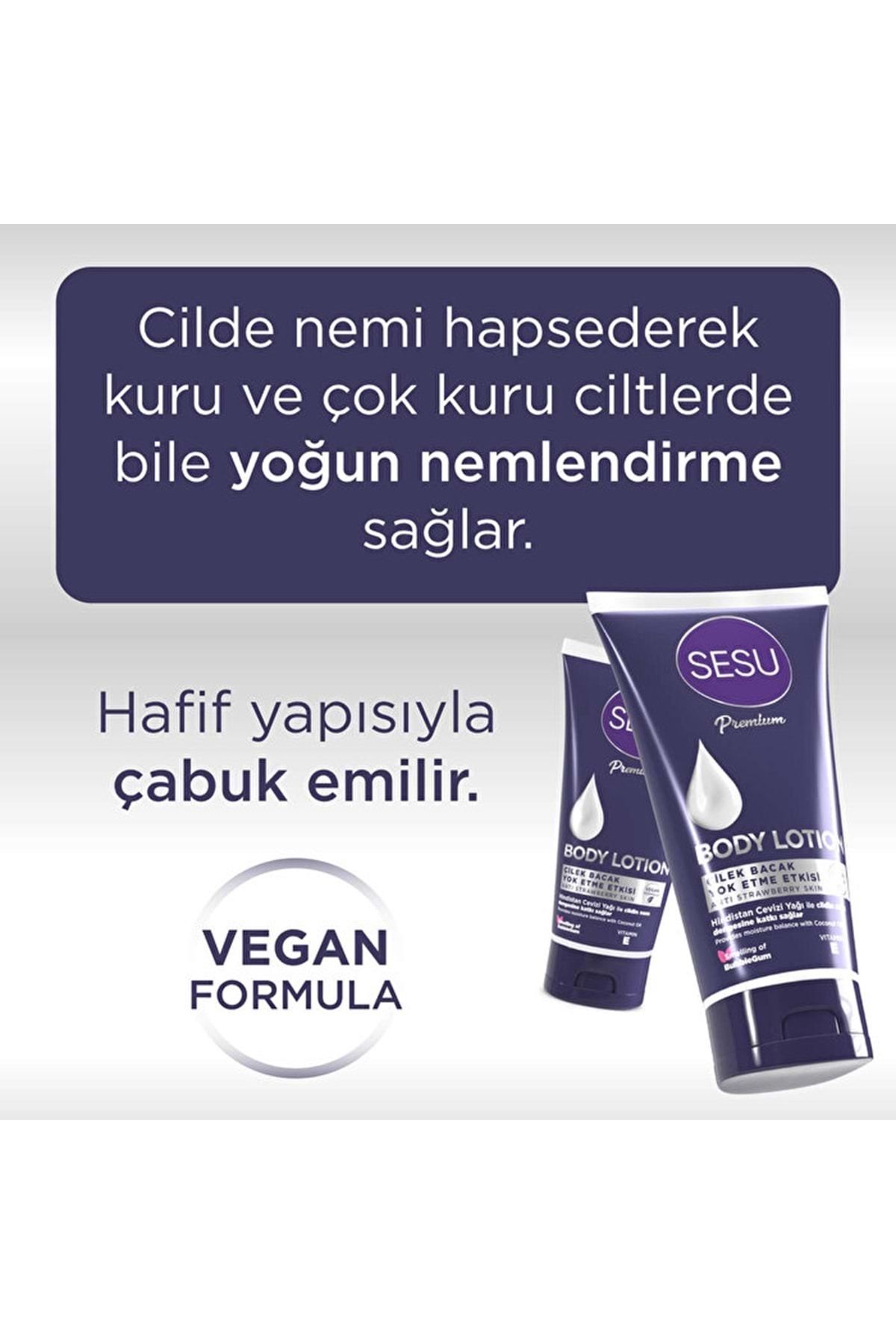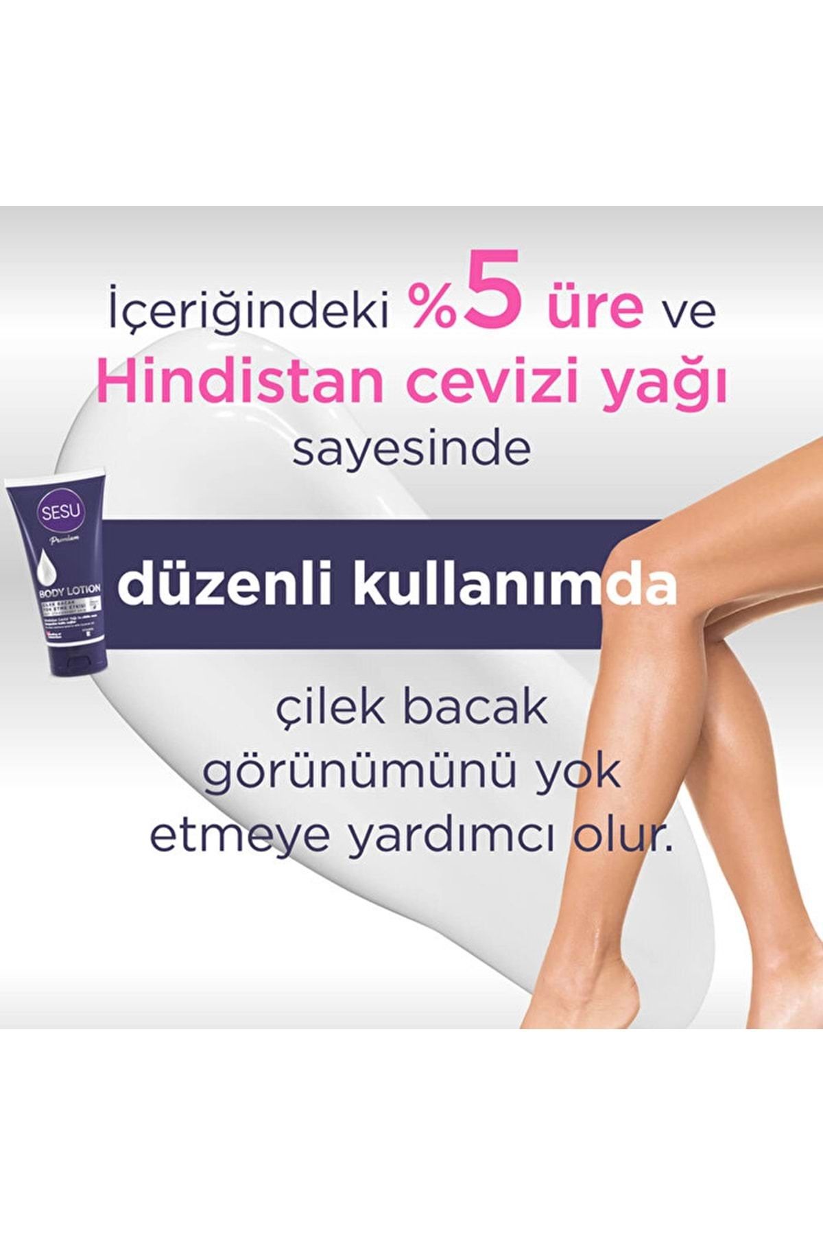 Sesu Vücut Losyonu 175ML (Body Lotıon) (2 Li Set) CİLT BAKIM RİTÜELİNDE İKİNCİ ADIM: SESU VÜCUT LOSYONU 175 ML Herkesin büyük bir heyecanla oluşturduğu ve yanına tik atmak için sabırsızlandığı bir #WishList ’i vardır.; Senin #WishList ’inde yerini alacak ve cilt bakım ritüelini oluşturmana yardımcı olacak yeni Sesu Premium Skincare serisi ile tanışmaya hazır mısın? İkinci adım: Sesu Vücut Losyonu, gel birlikte keşfedelim! %5 üre ve Hindistan cevizi yağı içeren özel formülü sayesinde düzenli kullanımda çilek bacak görünümünü yok etme etkisine sahiptir.; Cilde nemi uzun süre hapsederek kuru, çok kuru ve pürüzlü ciltlerde bile yoğun nemlendirme sağlar.; Düzenli kullanımda çilek bacak görünümünü yok etmeye yardımcı olur.; Canlı, aydınlık ve pürüzsüz bir cilt görünümü sağlar.; Hafif yapısıyla çabuk emilir.; Yağlılık hissi bırakmaz.; Bubblegum kokuludur.