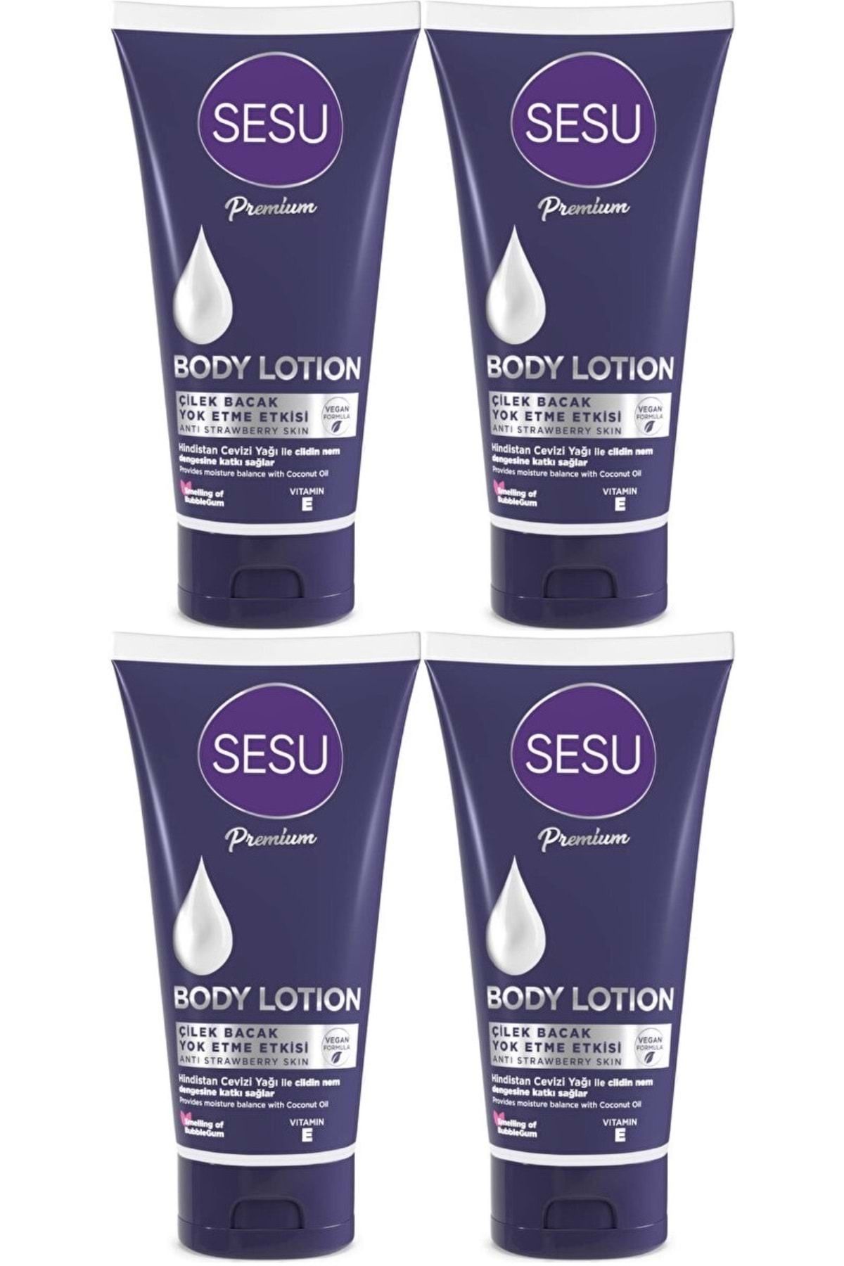 Sesu Vücut Losyonu 175ML (Body Lotıon) (4 Lü Set) CİLT BAKIM RİTÜELİNDE İKİNCİ ADIM: SESU VÜCUT LOSYONU 175 ML Herkesin büyük bir heyecanla oluşturduğu ve yanına tik atmak için sabırsızlandığı bir #WishList ’i vardır.; Senin #WishList ’inde yerini alacak ve cilt bakım ritüelini oluşturmana yardımcı olacak yeni Sesu Premium Skincare serisi ile tanışmaya hazır mısın? İkinci adım: Sesu Vücut Losyonu, gel birlikte keşfedelim! %5 üre ve Hindistan cevizi yağı içeren özel formülü sayesinde düzenli kullanımda çilek bacak görünümünü yok etme etkisine sahiptir.; Cilde nemi uzun süre hapsederek kuru, çok kuru ve pürüzlü ciltlerde bile yoğun nemlendirme sağlar.; Düzenli kullanımda çilek bacak görünümünü yok etmeye yardımcı olur.; Canlı, aydınlık ve pürüzsüz bir cilt görünümü sağlar.; Hafif yapısıyla çabuk emilir.; Yağlılık hissi bırakmaz.; Bubblegum kokuludur.