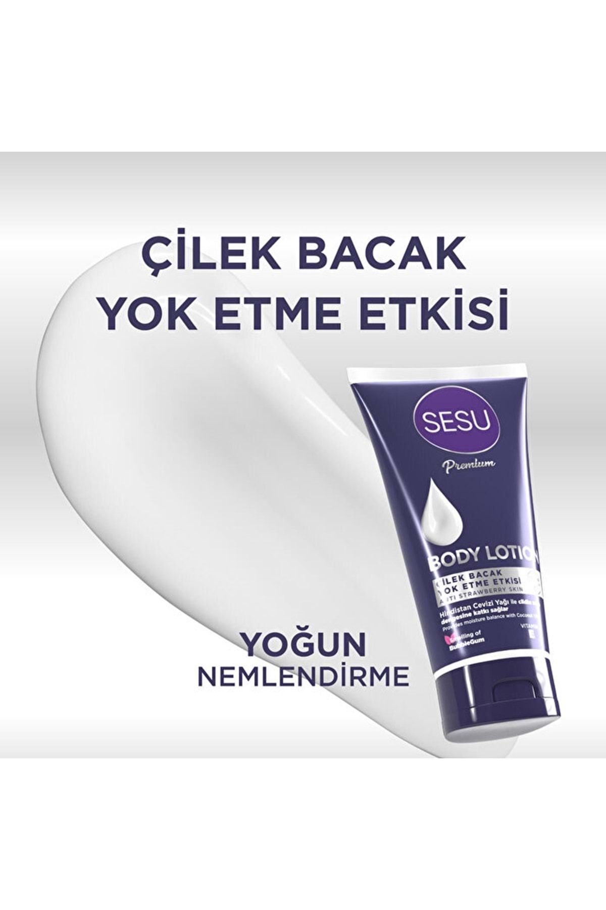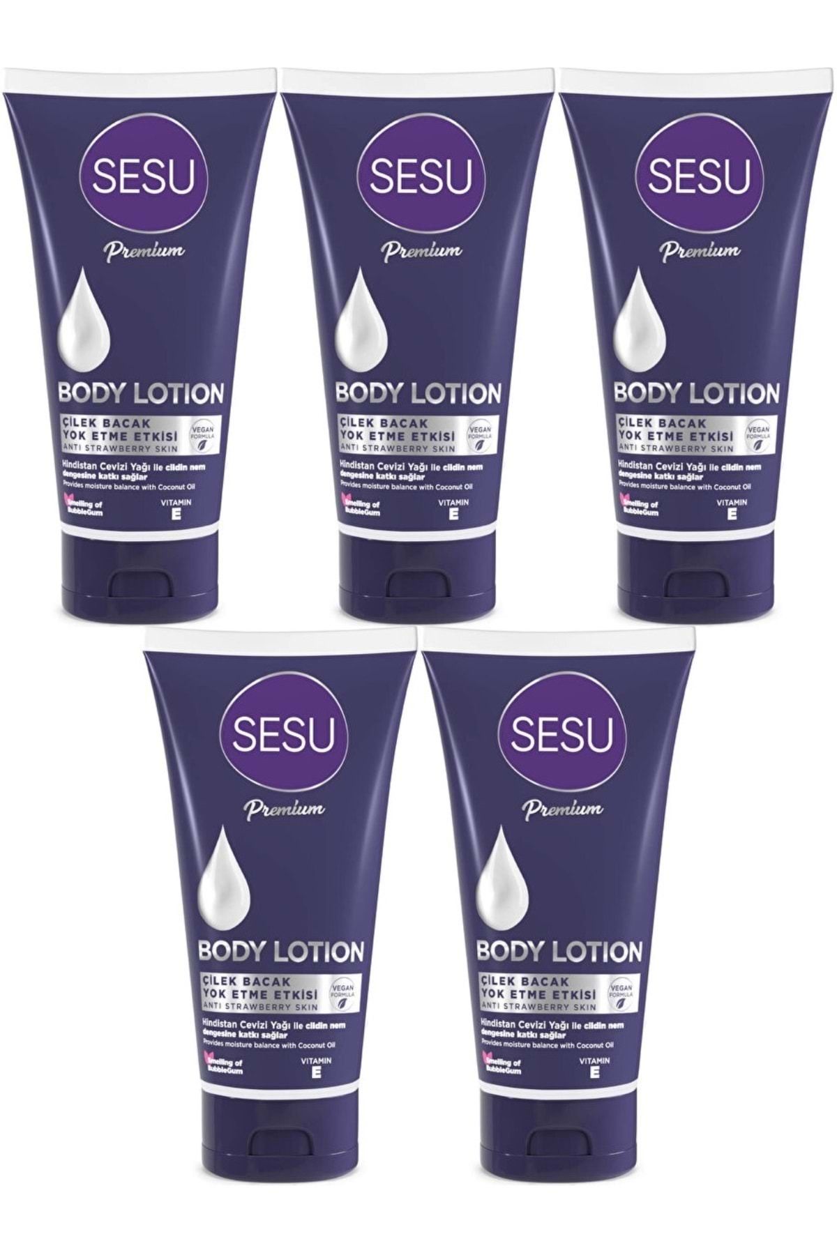Sesu Vücut Losyonu 175ML (Body Lotıon) (5 Li Set) CİLT BAKIM RİTÜELİNDE İKİNCİ ADIM: SESU VÜCUT LOSYONU 175 ML Herkesin büyük bir heyecanla oluşturduğu ve yanına tik atmak için sabırsızlandığı bir #WishList ’i vardır.; Senin #WishList ’inde yerini alacak ve cilt bakım ritüelini oluşturmana yardımcı olacak yeni Sesu Premium Skincare serisi ile tanışmaya hazır mısın? İkinci adım: Sesu Vücut Losyonu, gel birlikte keşfedelim! %5 üre ve Hindistan cevizi yağı içeren özel formülü sayesinde düzenli kullanımda çilek bacak görünümünü yok etme etkisine sahiptir.; Cilde nemi uzun süre hapsederek kuru, çok kuru ve pürüzlü ciltlerde bile yoğun nemlendirme sağlar.; Düzenli kullanımda çilek bacak görünümünü yok etmeye yardımcı olur.; Canlı, aydınlık ve pürüzsüz bir cilt görünümü sağlar.; Hafif yapısıyla çabuk emilir.; Yağlılık hissi bırakmaz.; Bubblegum kokuludur.