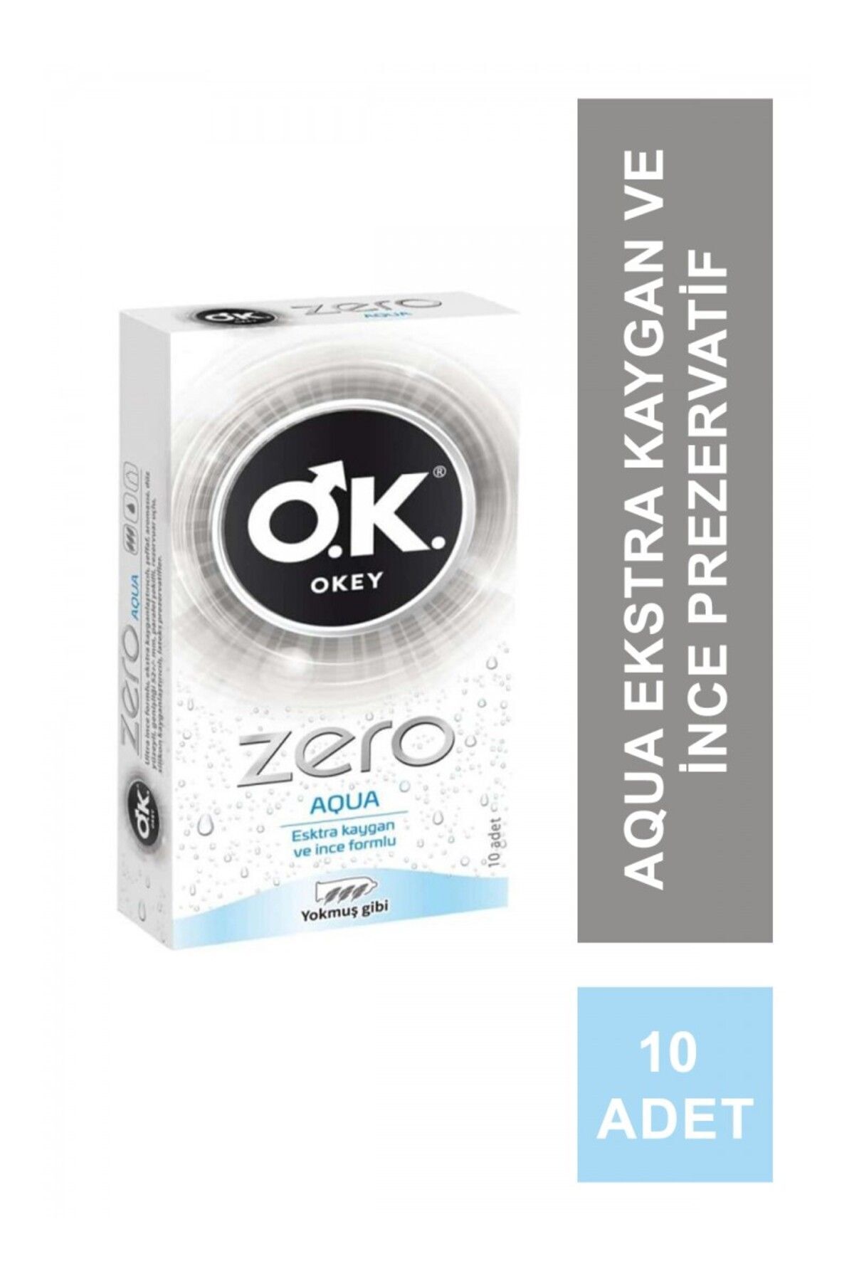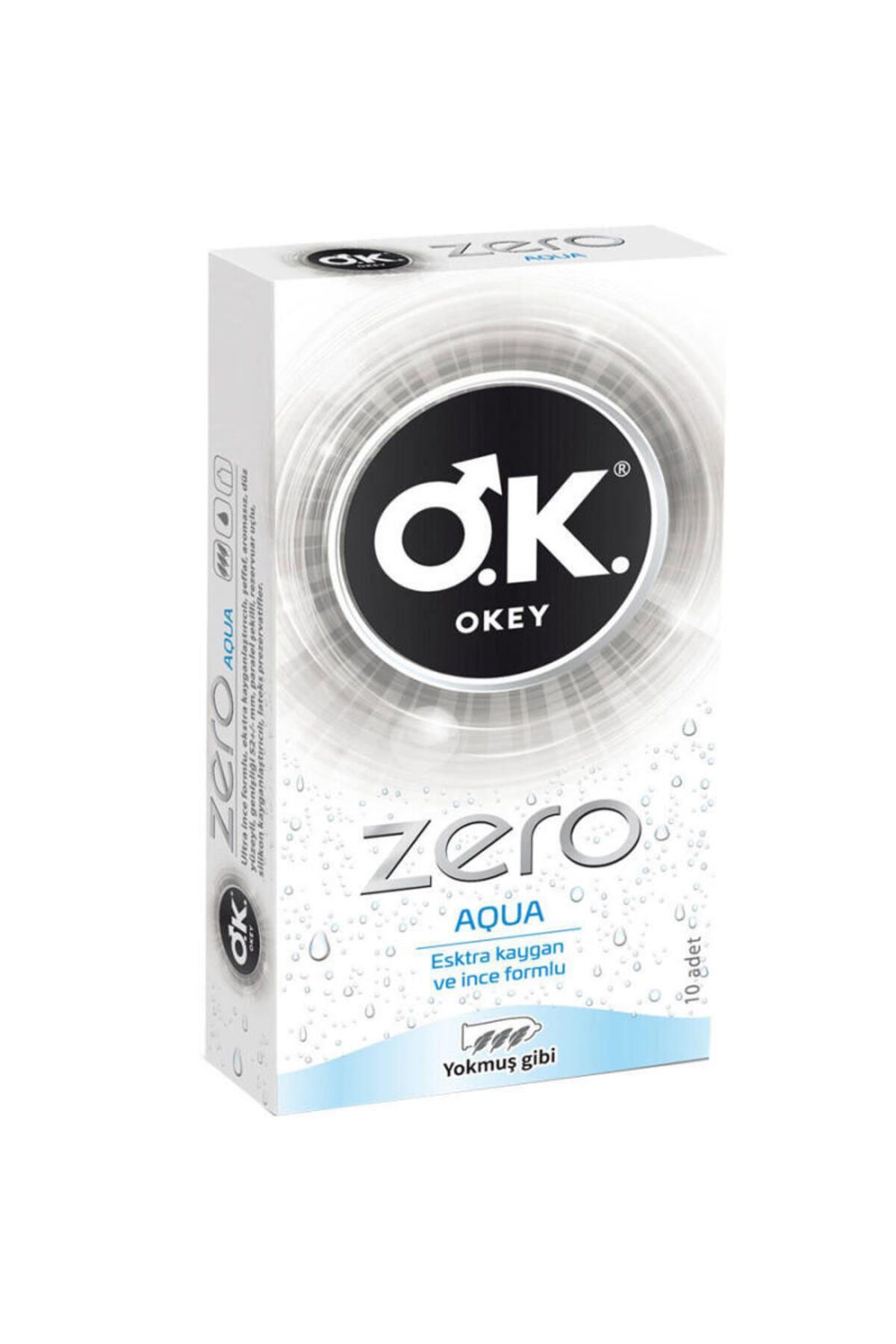 OKEY – TÜRKİYE’NİN 1 NUMARASI* *A.C. ; Nielsen toplam Türkiye prezervatif pazarı adet ve ciro bazında 2018 tüm yıl sonuçlarına göre. ; OKEY ZERO AQUA – O KADAR İNCE Kİ SANKİ YOKMUŞ GİBİ Ekstra ince yapısıyla sanki yokmuş gibi. ; Ekstra kayganlaştırıcılı yapısıyla ilişkiye girmeyi kolaylaştırır. ; İncecik formuyla zevkin ince halini yaşatır. ; GİZLİ KARGO Kargo paketinizin üzerinde hiç bir marka, logo ve içerik bilgisi yer almaz. ; ZERO AQUA Ekstra kaygan ve ince formlu. ; OKEY İLE GÜVENDESİNİZ – Elektronik olarak test edilmiştir. ; – Dermatolojik olarak test edilmiştir. ; – Hayvanlar üzerinde test edilmemiştir. ; – TSE Ekstra ince ve ekstra kayganlaştrıcılı dokusu ile hazzı yoğunlamasına yaşamak isteyenler için Okey Zero Aqua. ; OKEY Zero Aqua 10’lu Ekonomik Paket Hazzı tam anlamıyla yaşamanızı sağlayan OKEY Zero Aqua prezervatif, yokmuş hissi veren yapısıyla öne çıkıyor. ; Prezervatiflerin incecik yapısı sayesinde partnerlerin birbirini tamamen hissetmesi mümkün. ; Zero Aqua, ince yapısının yanı sıra ekstra kaygan özelliğiyle de sıklıkla tercih ediliyor. ; Ultra kayganlaştırıcı jeller, cinsel birlikteliklerin çok daha rahat olmasını sağlıyor. ; Rezervuar uçlu tasarımı sayesinde kolaylıkla kullanıma hazır hale getirilen prezervatiflerle, partnerinizi tamamen hissederek haz dolu birliktelikler yaşayabilirsiniz. ; • Ekstra kayganlaştırıcılı doku • Ekstra ince yapı • Aromasız İncecik Yapısı Sayesinde Yalnızca Partnerinizi Hissedin! OKEY’in ürettiği en ince prezervatiflerden biri olan Zero Aqua, yokmuş hissi veren yapısıyla tercih ediliyor. ; OKEY Zero Aqua kullananlar yalnızca partnerlerini hissederek çok daha yoğun bir haz yaşayabiliyor. ; Bu prezervatifler, ektra ince yapılarına rağmen güvenli ilişkileri de mümkün kılarak üstün koruma sağlıyor. ; Düz yüzeyi sayesinde ise yokmuş hissini çok daha fazla yaşayabilirsiniz. ; Extra Kaygan Formla Rahat Bir İlişki Yaşayın! Aromasız ve kokusuz Zero Aqua prezervatifler, ultra ince ve ekstra kayganlaştırıcılı yapısı ile rahat bir ilişki yaşamanızı mümkün kılıyor. ; Kuruluğun önüne geçen prezervatifler sayesinde hem rahat bir ilişki yaşayabilir hem de yalnızca partnerinizi hissedebilirsiniz.;